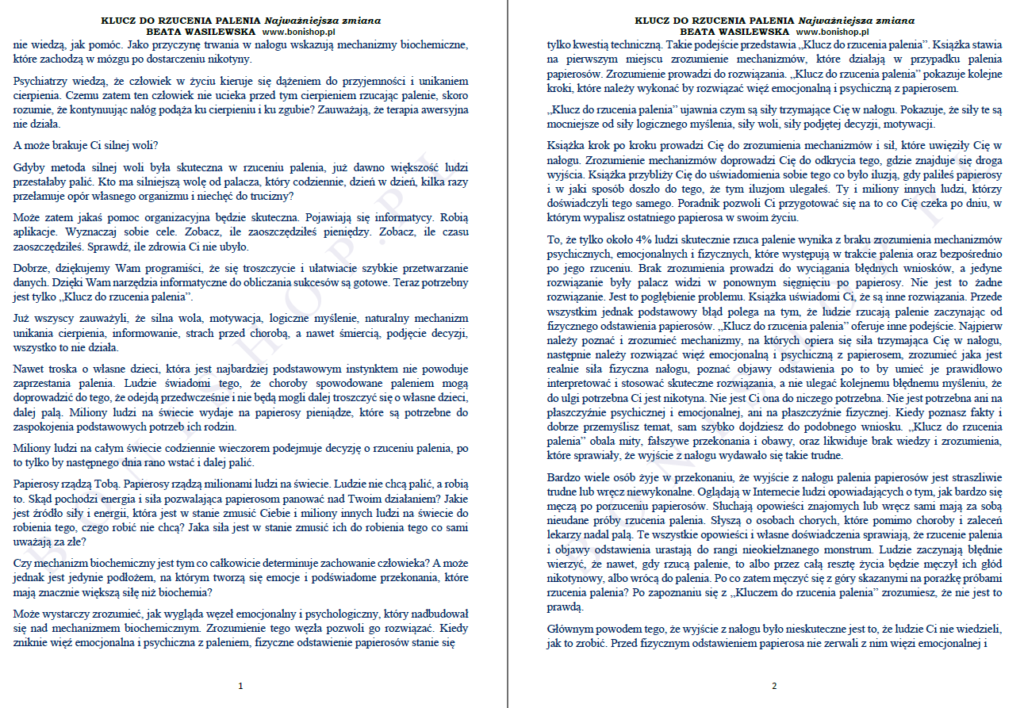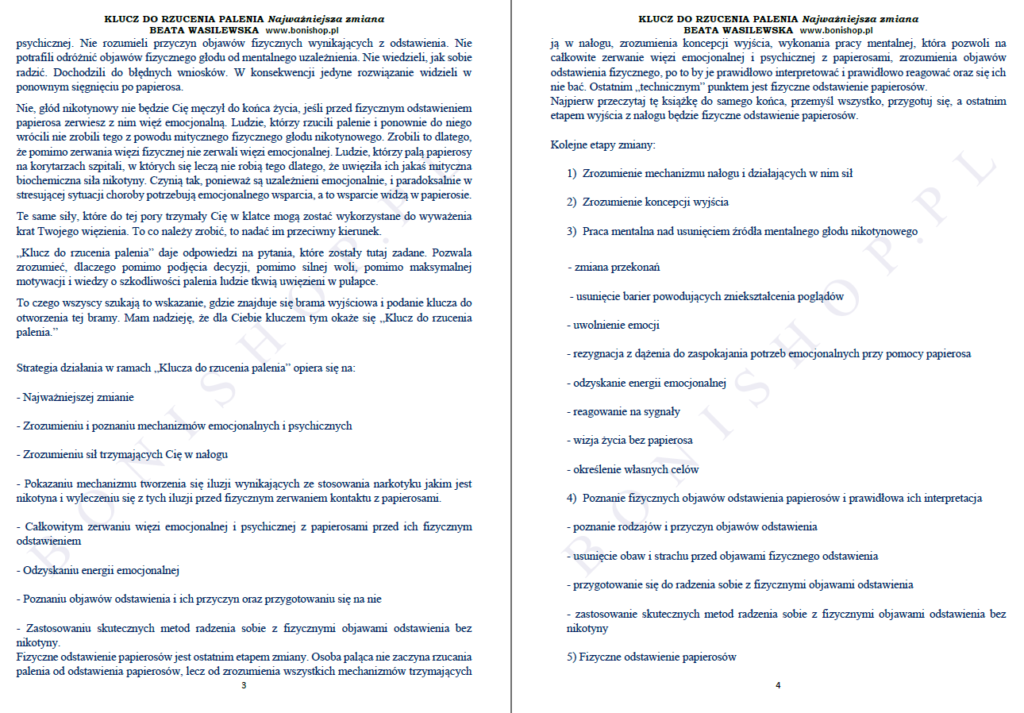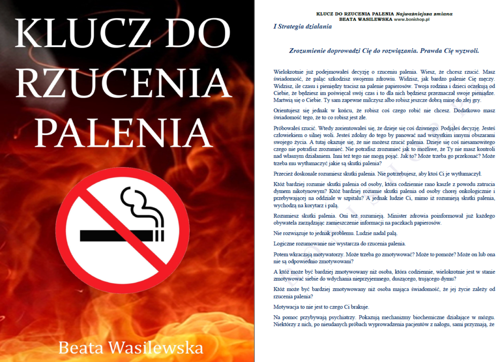 Książka, która pomoże Ci zrozumieć, że mechanizm biochemiczny nie jest tym co najmocniej wiąże Cię z paleniem. Prawdziwe uzależnienie wynika z więzi psychiczno- emocjonalnej, która nadbudowała się nad mechanizmem biochemicznym. Poradnik pomoże Ci rozwiązać więź emocjonalną z papierosami przed ich fizycznym odstawieniem.